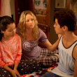 Очень жаль, что при переводе на русский язык теряется игра слов, заключенная в названии сериала, хотя в английском она очевидна. С одной стороны, Фостеры - семейная фамилия. С другой, "foster parents" - это приемные родители, каковыми и являются героини шоу, лесбийская пара, воспитывающая пятерых детей-подростков. Поэтому, вспоминая о "Фостерах", мы подразумеваем название "Приемные мамы". Брендон - сын Стеф, которого она родила 16 лет назад в непродолжительном гетеросексуальном браке, еще не осознав себя лесбиянкой. Хесус и Марианна - близнецы-латиноамериканцы, усыновленные парой после того, как их бросила собственная биологическая мать. И, наконец, Келли и Джуд, родные брат и сестра, почти случайно попадающие в семью из государственной системы опеки, которые постепенно осваиваются и привыкают к своим новым матерям.