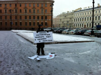"Законы, заставляющие молчать, ведут к насилию и убийствам...", "Гитлер тоже начинал с закона против геев" - эти плакаты держали гражданские активисты, проводившие одиночные пикеты.