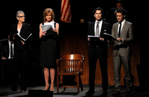 В субботу вечером самые яркие звезды Голливуда поднялись на театральную сцену, чтобы представить пьесу под названием "8", написанную Дастином Лэнсом Блэком и посвященную истории судебных слушаний, в результате которых конституционная поправка, запрещающая в Калифорнии однополые браки, была признана антиконституционной.