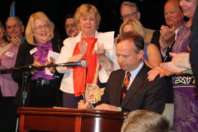 Губернатор Джек Маркелл подписывает закон о гражданских однополых партнерствах