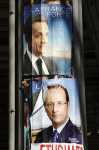 Предвыборные постеры Николя Саркози и Франсуа Олланда