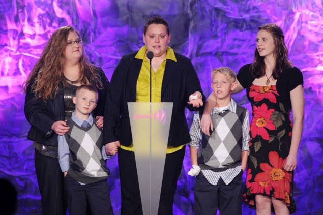 Дженнифер Тайррелл с семьей на церемонии GLAAD