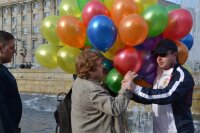 В Саратове на одну из центральных площадей города, несмотря на угрозы националистов и клерикалов, пришли несколько активистов, в основном - девушки. Националисты попытались испортить праздник. Они уничтожили шарики. Участники акции не пострадали.