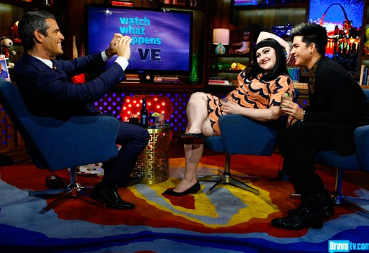 Музыканты общались с ведущим программы и с телезрителями, которые связывались со студией по телефону. Хозяином "Watch What Happens" является Энди Коэн (Andy Cohen), который также не делает тайны из своей ориентации: Коэн стал первым в США открытым геем - ведущим собственного вечернего телешоу. Беседуя с Ламбертом, Коэн сказал, что промоутировал недавно свою книгу, в связи с чем дал несколько интервью. Больше всего его поразило то, что периодически ему приходилось сталкиваться с вопросами вовсе не о книге, а о том, пассив он, или актив, из чего можно сделать вывод, что вопросы ориентации знаменитостей по-прежнему остаются в центре внимания публики. По словам Коэна, он был вне себя от гнева, когда два года тому назад телеканал АВС фактически объявил Ламберту бойкот и подверг его обструкции за то, что во время выступления на церемонии вручения American Music Awards Адам поцеловал парня - музыканта своей группы. "Ты сделал то же самое, что делали все остальные поп-музыканты задолго до тебя - за исключением того, что это было сделано геем", - констатировал Коэн.