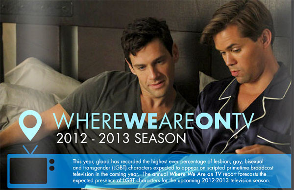 GLAAD опубликовал 17-й ежегодный доклад под названием "Где мы есть на телевидении" (Where We Are on TV), в котором утверждается, что в телевизионных сериалах - как драмах, так и комедиях - транслирующихся в прайм-тайм в этом сезоне ожидается 4,4 процента ЛГБТ-персонажей от общего количества героев. В 2011 году таковых было 2,9 процента, в связи с чем можно отметить позитивную тенденцию роста.