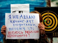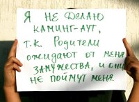 В этот день геи, лесбиянки, бисексуалы и транссексуалы Киргизии рассказали о том, почему они решаются на камин-аут или предпочитают пока не выходить из "шкафа". Члены организации "Лабрис" сформулировали свои чувства в текстах на плакатах. ...И сфотографировались с открытыми или спрятанными лицами. Пока только 6 из 16 участников проекта совершили камин-аут... Смелых парней - всего двое, остальные - девушки. Впрочем, не будем поддаваться гендерным стереотипам!..
