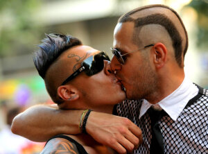 Гей-активисты поводят сегодня в Тель-Авиве акцию протеста в форме массовых поцелуев однополых пар на ступенях тель-авивского раввината.