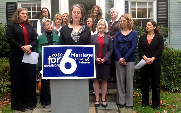 В этом штате 6 ноября пройдет референдум по вопросу о конституционной поправке, запрещающей гей-браки. Именно этой проблеме и была посвящена пресс-конференция. "Я открываю свой дом для вас, потому что это - важная проблема, касающаяся справедливости, - сообщила бывшая сотрудница Библиотеки Конгресса США Мэрилин Парр (Marilyn Parr), организовавшая эту встречу на лужайке возле своего дома. - Я собрала нескольких женщин, таких же как я, которые уверены, что внесение конституционной поправки - это несправедливость и неравенство. И я позволю им поделиться своими мнениями, при этом сама я считаю, что пара, которая готова провести друг с другом всю жизнь, должна рассматриваться так же, как я в своем браке. И это будет правильным. Для жителей Мэриленда настало время сделать верный выбор и проголосовать за справедливость для всех семей, которые должны быть равны перед законом".