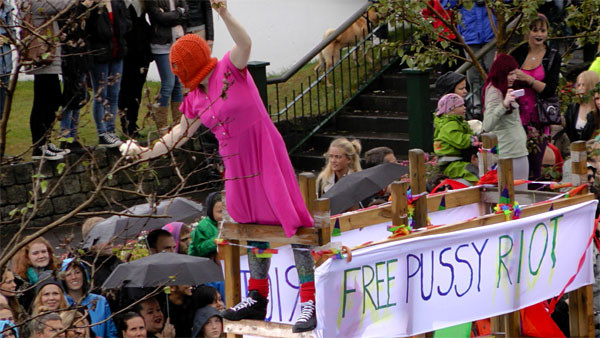 В августе этого года мэр Рейкьявика Йон Гнарр принял участие в городском гей-параде, состоявшемся за неделю до вынесения судебного приговора по делу Pussy Riot. Чтобы выразить девушкам поддержку, Гнарр нарядился в розовое платье и надел на голову маску-балаклаву.