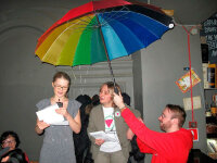 На вечеринке также прошло награждение победителей акции "Камин-аут гетеросексуала - друга ЛГБТ". "...Мы получили много замечательных работ, выбрать лучшие из которых было очень трудно, поскольку все они были достойными и искренними. Нам писали из многих городов России, Киргизии, Украины, Австралии, Израиля, Германии и США. Писали студенты и пенсионеры, политики и ученые, и даже - многодетные мамы... Было решено наградить не одного, как планировалось, а пять человек...".