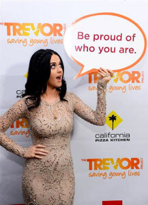 В воскресенье Trevor Project - организация, оказывающая психологическую помощь ЛГБТ-подросткам, которая стала одним из основных партнеров кампании "Все изменится к лучшему", вручила награду Героя (Hero Award) певице Кэти Перри (Katy Perry). Этой премией организация отмечает "тех мужчин и женщин, которые служат источником вдохновения для ЛГБТ-молодежи и способствуют повышению уровня понимания представителей гей-сообщества".