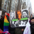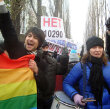 В субботу, 8 декабря, ЛГБТ- и гражданские активисты провели в центре Киева акцию, посвященную Международному дню защиты прав человека. Главная цель мероприятия - заявить о недопустимости принятия Верховной Радой двух законопроектов о запрете "пропаганды гомосексуализма", предусматривающих не только административное, но и уголовное наказание. Один из этих законопроектов получил в парламенте номер 8711 и уже принят в первом чтении, второй - 10290 - рассматривается в комитетах. Акция называлась "Скажи решительное "НЕТ" законодательному насилию над правами человека".