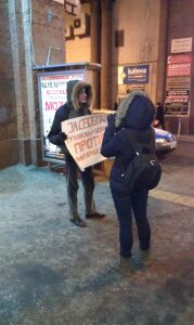 Сегодня с 9 утра гей-активисты проводили серию одиночных пикетов в центре столицы. Таким образом они протестовали против намерения парламента ввести федеральный запрет на так называемую "пропаганду гомосексуализма" среди несовершеннолетних.