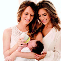 Джиллиан Майклз (справа) с партнершей и новорожденным сыном