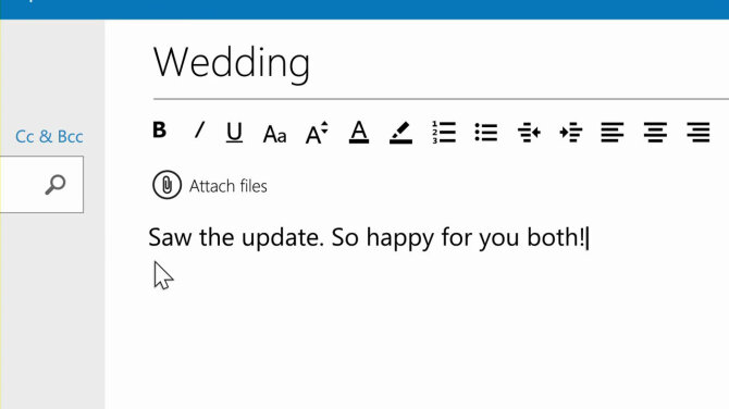 Среди событий, демонстрируемых в ролике, мы видим двух женщин, празднующих свадьбу, после чего профиль одной из них в социальной сети обновляется в связи с ее новым семейным статусом. Если раньше в этом профиле имя женщины значилось как Сара Джонс, то после свадьбы она стала Сарой Джонс-Браун, взяв в качестве второй составляющей фамилию жены. Фото в профиле также меняется на свадебное. За всеми этими изменениями через свой Outlook наблюдает ее знакомая, которая отправляет Саре послание: "Видела обновления. Очень рада за вас обеих!"