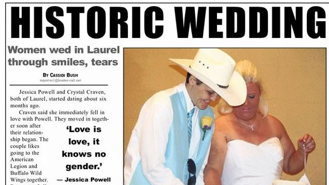 Репортаж о свадьбе женщин был опубликован газетой "The Laurel Leader-Call" на первой полосе. Заголовок гласил: "Историческая свадьба". Это вызвало настоящий шквал отзывов: гневные звонки, возмущенные электронные письма и отказ от подписки на газету. С другой стороны, были и такие читатели, которые встретили репортаж с энтузиазмом.