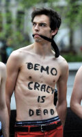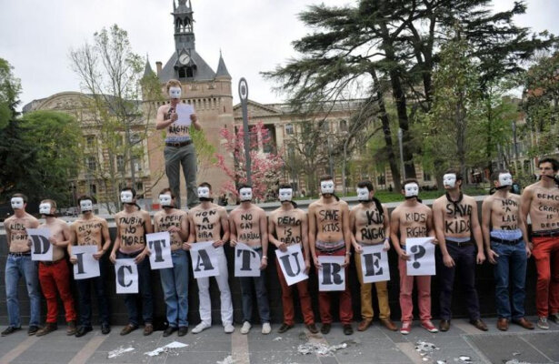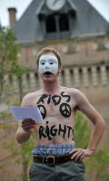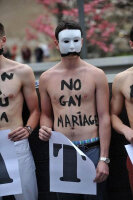 Мужчины, обнаженные по пояс, с лозунгами, написанными прямо на теле, выступали против однополых браков во Франции. Эта группа называет себя Les Hommen и крайне недовольна решением французских парламентариев и президента разрешить гомосексуалам вступать в браки и усыновлять детей.