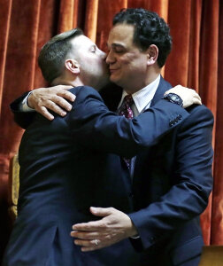 "Подлинное равенство заложено в природе человека", - отметил спикер Палаты представителей Род-Айленда Гордон Фокс (Gordon Fox), который сам является открытым геем. Теперь он собирается сыграть свадьбу со своим давним партнером Маркусом ЛаФондом. "Мы не будем больше говорить о проблеме однополых браков - мы будем говорить о самих однополых браках!" - подытожил он.