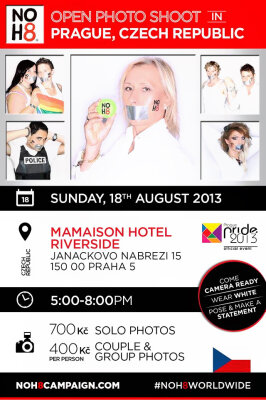 В пресс-релизе, опубликованном в Фейсбуке NOH8, сообщается, что фото Мартины Навратиловой является еще своеобразной рекламой, приглашающей принять участие в фотосессии кампании, которая состоится в Праге - родном городе спортсменки. Мероприятие запланировано на 18 августа пражском отеле Mamaison Hotel Riverside. Это будет одна из "выездных фотосессий" кампании за пределы Американского континента. Летом Адам Буска будет фотографировать в Дании, Бельгии, Ирландии и Нидерландах. Его моделями становятся не только знаменитости, но и простые люди, поддерживающие равенство брака и права ЛГБТ вне зависимости от сексуальной ориентации.
