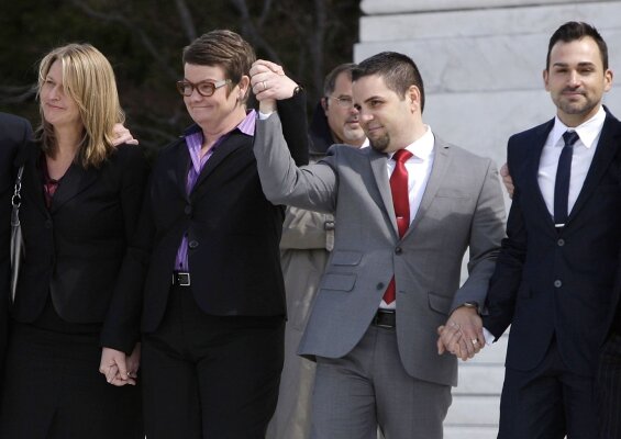 Зарилло и Катами, равно как и Перри со Стиер, узнали о вердикте, вынесенном Верховным судом, точно так же, как и остальные граждане: благодаря новостным сообщениям, полученным через смартфоны. Вместе с тысячами других сторонников равенства брака они дежурили в тот день возле здания суда.