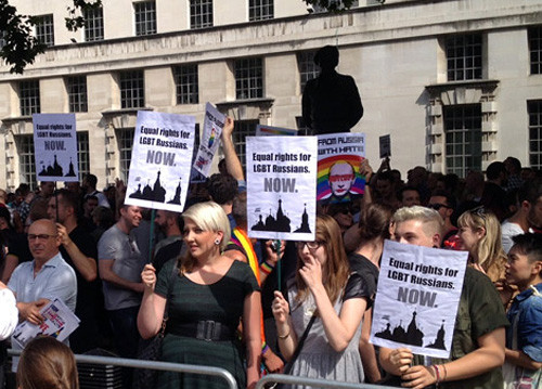 Радужные новостиБолее тысячи лондонцев приняли участие в протесте против российского гомофобного закона возле резиденции премьера