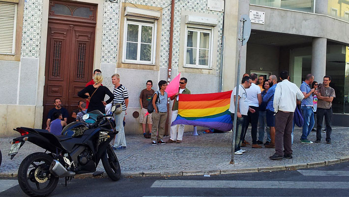К международной акции протеста "Поддержи геев в России!" в минувшие выходные присоединились гей-активисты Португалии. Как сообщает Маргарита Шарапова, которая некоторое время назад попросила политического убежища в этой стране, в Лиссабоне у посольства России "представители ЛГБТ-сообщества собрались уютной стайкой, словно бы в кофейне...".