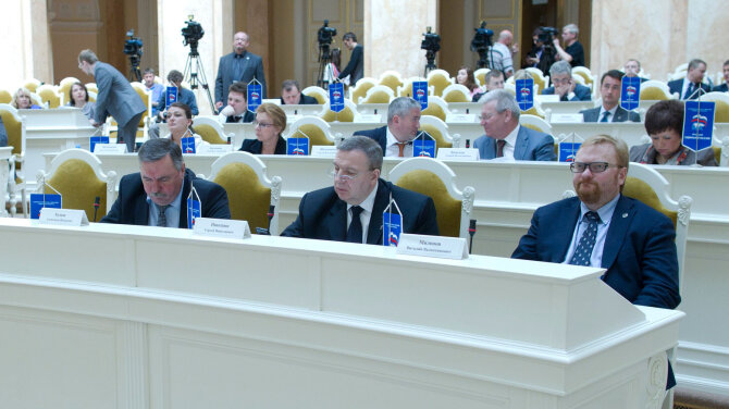 Депутат Виталий Милонов (справа) на заседании Законодательного собрания Санкт-Петербурга