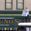 Под окнами офиса, в котором работает Алисса, собралась толпа любопытствующих, а ее подруга, Джинни Сикел Стербентц (Jeanne Sickel Sterbentz), залезла на крышу припаркованного напротив автобуса и под гитарную балладу стала один за другим показывать нарисованные вручную плакаты, на которых большими буквами было выведено: "Привет! Немногим более шести лет назад я встретила девушку, которая похитила мое сердце и изменила мою жизнь ... Я хочу оставаться с тобой до конца наших дней ... Алисса, ты выйдешь за меня?"