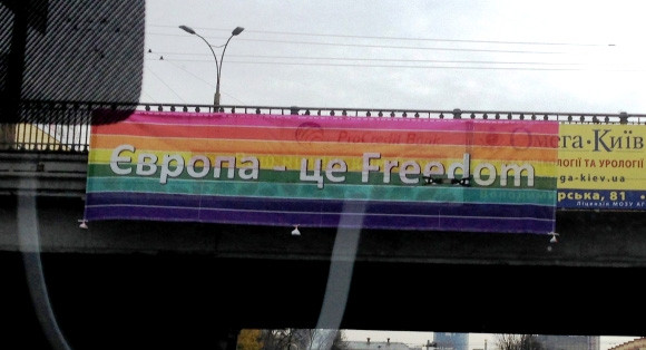 В течение последнего месяца украинцы уже стали свидетелями нескольких провокаций якобы от лица представителей ЛГБТ, к которым гей-сообщество на самом деле не имеет никакого отношения. Не далее как в понедельник в Киеве на проспекте Победы кто-то вывесил огромный псевдорадужный флаг с надписью "Європа - це Freedom", что, по мнению анонимных авторов затеи, должно было вызвать у прохожих ассоциации с геями, которые рвутся в свободную Европу. На самом же деле, с ЛГБТ это загадочное восьмицветное знамя никак не соотносится - хотя бы потому, что символом борьбы гомосексуалов за свои права является флаг, состоящий из шести разноцветных полос.