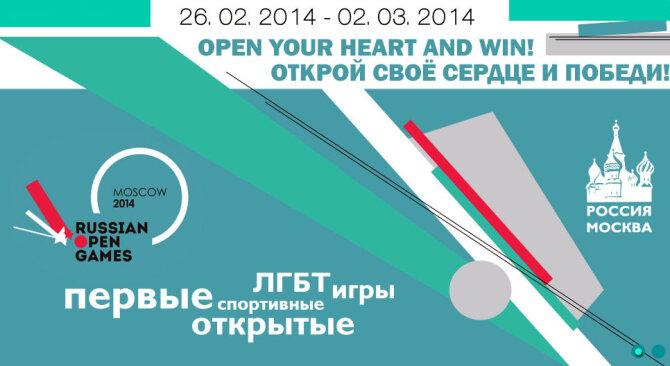 Как мы уже сообщали, Первые Российские открытые ЛГБТ-игры начнутся в Москве на третий день после закрытия Олимпиады в Сочи 26 февраля 2014 года. Спортивные состязания, которые продлятся пять дней, пройдут под лозунгом "Открой свое сердце и победи!"