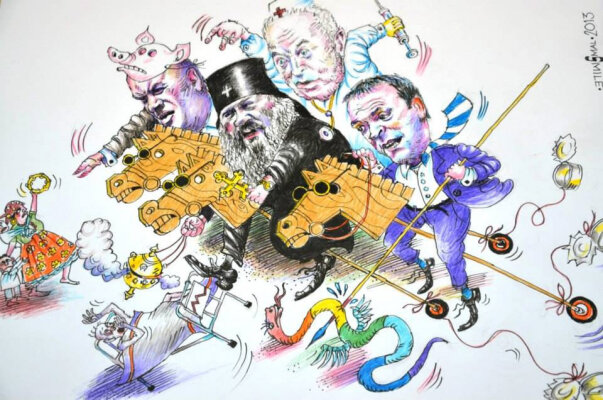Украинский художник-карикатурист Олег Смаль изобразил всех победителей антипремии "Дискриминатор года" в своей работе. Вадим Колесниченко - на переднем плане