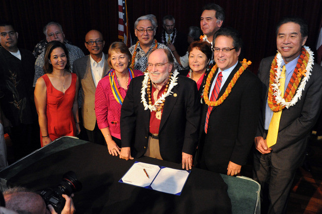 Губернатор Нил Аберкромби подписывает законопроект о равенстве брака