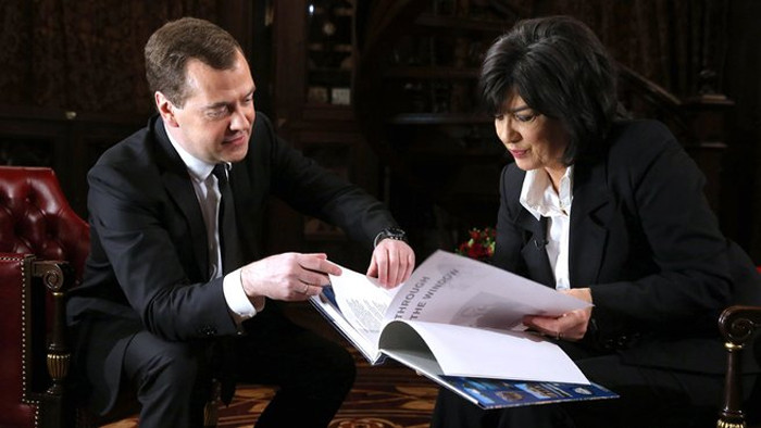 Председатель Правительства России Дмитрий Медведев заявил, что внимательно пробороздил весь Рунет и не обнаружил там ни одной жалобы от российского гея на проблемы в области прав человека. Он также не заметил и бегства русских ЛГБТ-граждан в другие страны мира. По его словам, проблема так называемой "гомопропаганды" вообще не актуальна для нашей страны, так как "волнует очень незначительную часть населения"... Об этом Дмитрий Медведев заявил в интервью телекомпании CNN. Собеседница Медведева Кристиан Аманпур после нескольких попыток под занавес интервью смогла добиться от высокопоставленного чиновника ответа на "жгучий вопрос".