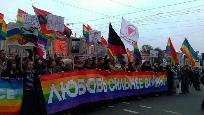 В Москве и Санкт-Петербурге ЛГБТ-Первомай прошел по-разному. В городе на Неве полиция не позволила провокаторам помешать участию гей-активистов в демонстрациях. В Москве отмечены десятки провокаций и нападений. Трое гей-активистов были задержаны полицией за "неповиновение законному распоряжению...".
