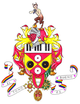 К примеру, сэр Элтон Джон. У него есть собственный герб, на котором изображены клавиши фортепиано, пластинки и сатир, играющий на духовом инструменте, напоминающем перуанскую флейту. Вскоре Элтон собирается заключить брак с Дэвидом, и после этого у них будет возможность создать семейный герб (в случае, если у Ферниша имеется таковой, или он решит им обзавестись).