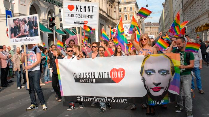 ЛГБТ-активисты, пишет Newsru.Сom cо ссылкой на Thelocal.At, воспользовались приездом Путина, чтобы в очередной раз выступить против принятого в России год назад так называемого антигейского закона, предусматривающего наказание за пропаганду гомосексуальных отношений. "Это привело к всплеску (в России) насилия над геями и росту числа самоубийств среди молодежи", - пишет The Local, публикуя фотоотчет с митинга активистов.