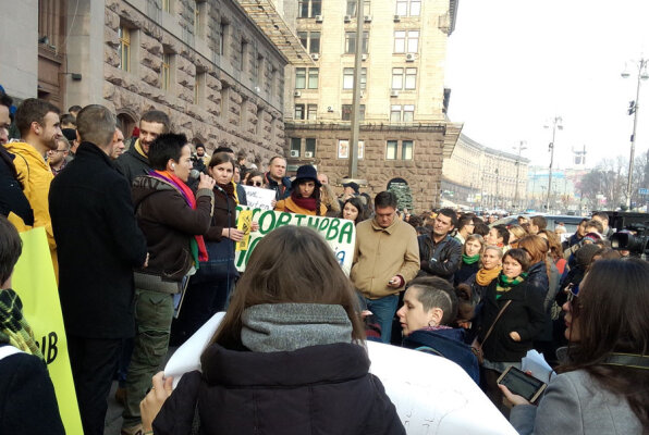 На митинге выступила лидер общественной организации "Инсайт", известная украинская ЛГБТ-активистка Елена Шевченко, которая заявила о том, что гомофобия - один из возможных мотивов преступления, и что ее ни в коем случае нельзя сбрасывать со счетов в процессе расследования. По словам Шевченко, поджог "Жовтня" - очередное свидетельство того, что неприязненное отношение к "иным" остается в стране большой проблемой.