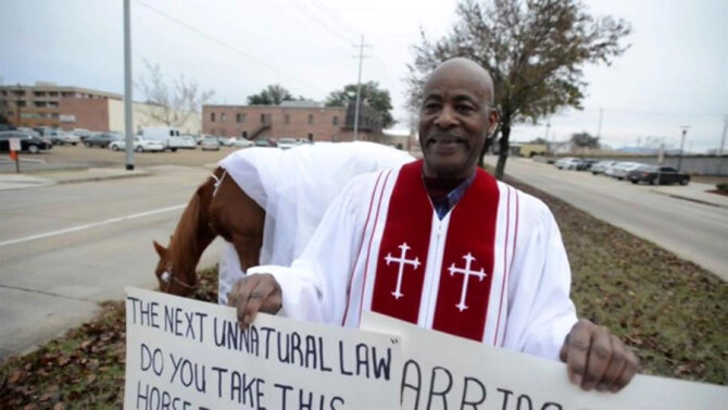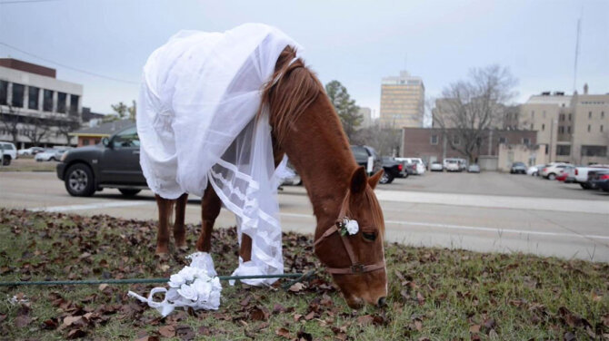 Радужные новостиСвященник из Миссисипи устроил протест против однополых браков, нарядив кобылу невестой