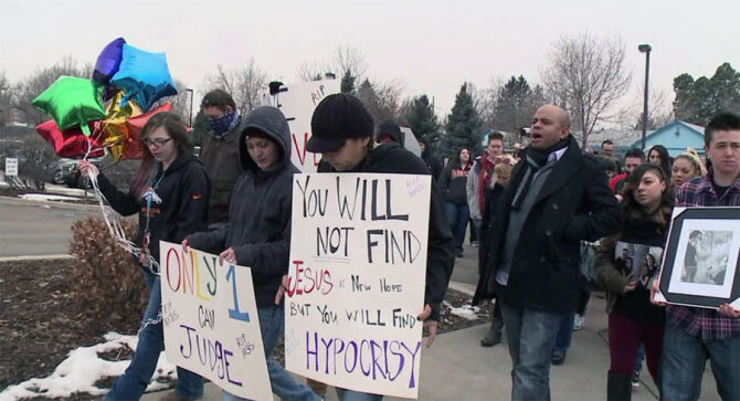 О случившемся стало известно после того, как друзья Ванессы устроили акцию протеста против действий пастора Чавеса. Около 50 человек собрались возле церкви с плакатами "Принесите нам извинения!" и "Позор пастору Рэю!".