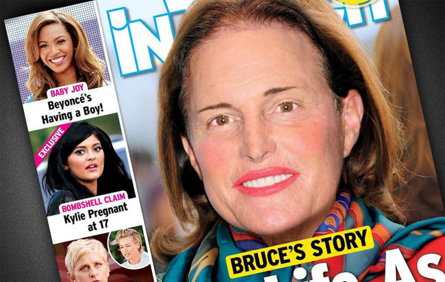 Около месяца тому назад таблоид "In Touch" вышел с портретом Брюса Дженнера на обложке, выглядящим как женщина. Снимок оказался фотомонтажом - Дженнер никогда не появлялся на публике в подобном виде. Сам он, как говорят, очень расстроился после этой выходки желтой прессы. По информации некоторых СМИ, камин-аут как трансгендерная женщина Брюс собирается совершить через ЛГБТ-журнал Advocate.