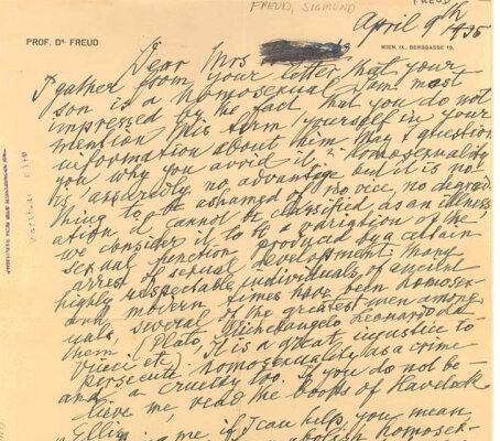 Принято считать, что мнение специалистов по поводу так называемого "лечения" геев изменялось с течением времени. Напомним, что Всемирная организация здравоохранения считала гомосексуальность психическим расстройством вплоть до 1990 года. Однако письмо 1935 года, написанное Зигмундом Фрейдом, развеивает этот миф. Отец психоанализа дал удивительный и красноречивый ответ одной даме, сын которой был гомосексуалом, сообщает PinkNews.