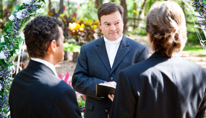 "Брак - это уникальная преданность двух людей друг другу, по традиции - мужчины и женщины, - которые поддерживают друг друга до конца своих дней", - такое определение фигурирует теперь в пресвитерианских циркулярах. Напрямую о союзе двух мужчин или двух женщин в них не говорится, однако новая формулировка открывает широкие возможности для церковного благословения однополых браков.