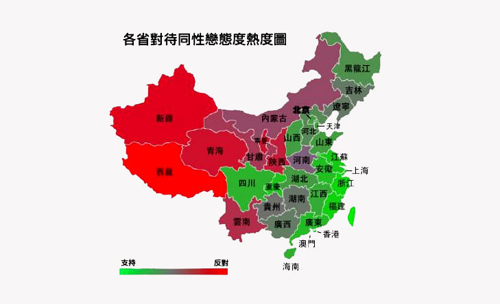 В Китае решили выяснить, какая из местных провинций наиболее дружественно относится к геям и лесбиянкам. Оказалось, что это - экономически развитые города на юго-востоке и побережье страны.