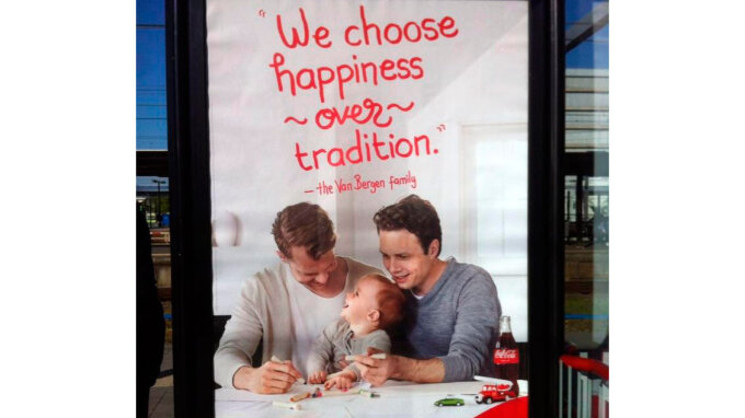 "Мы выбираем счастье, а не традиции" - под этим слоганом в прошлом месяце стартовала рекламная кампания Coca-Cola. В ряде стран Европы эти плакаты появились на автобусных остановка и в прессе. На плакатах изображены гей-пары с детьми.
