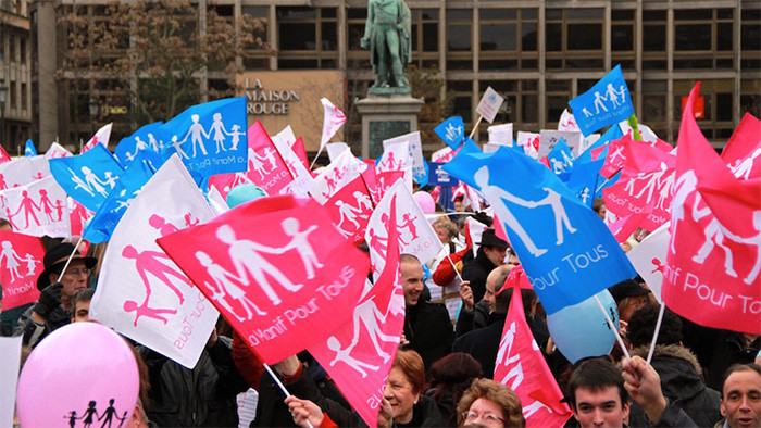 Дебаты по поводу принятия закона об однополых браках привели к многотысячным демонстрациям, как в их поддержку, так и против.