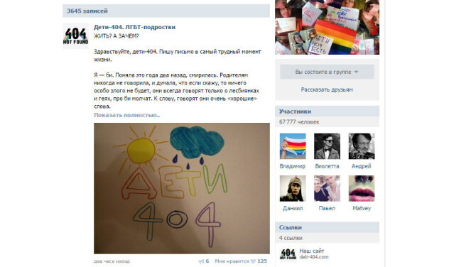 В сообществе "Дети 404" на страницах социальной сети "ВКонтакте" побит годовой рекорд посещаемости. А число подписчиков за день до его блокировки, которая может последовать согласно российским законам завтра, подскочило на 10 тысяч человек и приблизилось к 70 тысячам