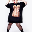 34-летняя солистка группы "Gossip" объявила о запуске линейки плюс-сайз-одежды, первой вещью в которой стало платье-футболка. На нем красуется легендарный корсет от Готье с конусообразными чашками, который прославила Мадонна. Полностью коллекция будет представлена в феврале.