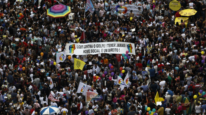 Да и сам парад состоялся на фоне глубокого политического кризиса, который переживает Бразилия. Критика из уст гей-сообщества звучит в адрес Мигеля Темера (Michele Temer), с 12 мая исполняющего обязанности президента взамен временно отстраненной от должности Дилмы Руссефф (Dilma Rousseff).