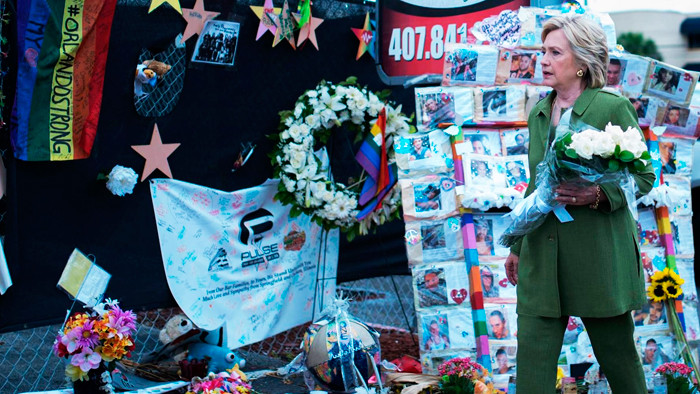 Клинтон обещала добиваться ограничения на владение огнестрельным оружием и бороться с распространением гомофобной идеологии. После встречи она с цветами приехала к месту мемориала жертвам трагедии, чтобы почтить память погибших во время бойни в Орландо.