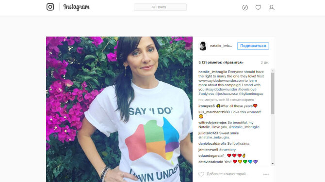 Радужные новостиНатали Имбрулья присоединилась к движению за равенство брака в Австралии